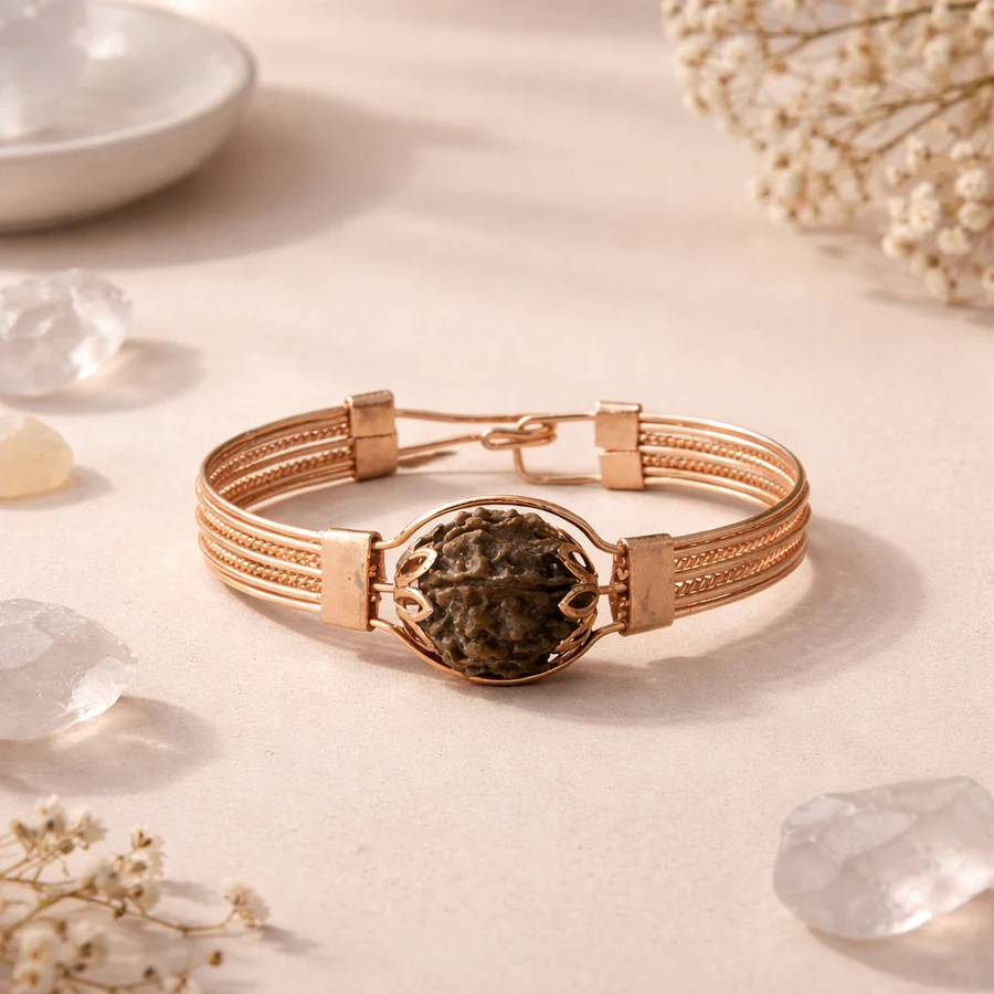 Handcrafted with Authentic 7 Mukhi Rudraksha, this bracelet embodies the divine energy of Lord Shiva. Known as Shiva’s tears, Rudraksha is revered for its spiritual power, promoting inner peace and enhancing focus. Complemented by its stylish design, this bracelet is a harmonious blend of style, spirituality, and strength, making it a perfect choice for Shiva devotees.