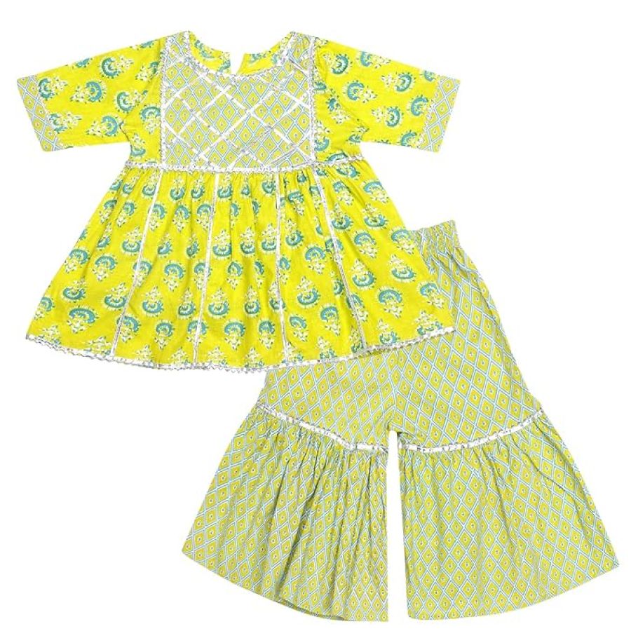 - Material: Cambric Cotton Blend Fabric Kurti And Sharara Set Suitable For Kids Delicate Skin And Durable Enough For Casual And Party Wear