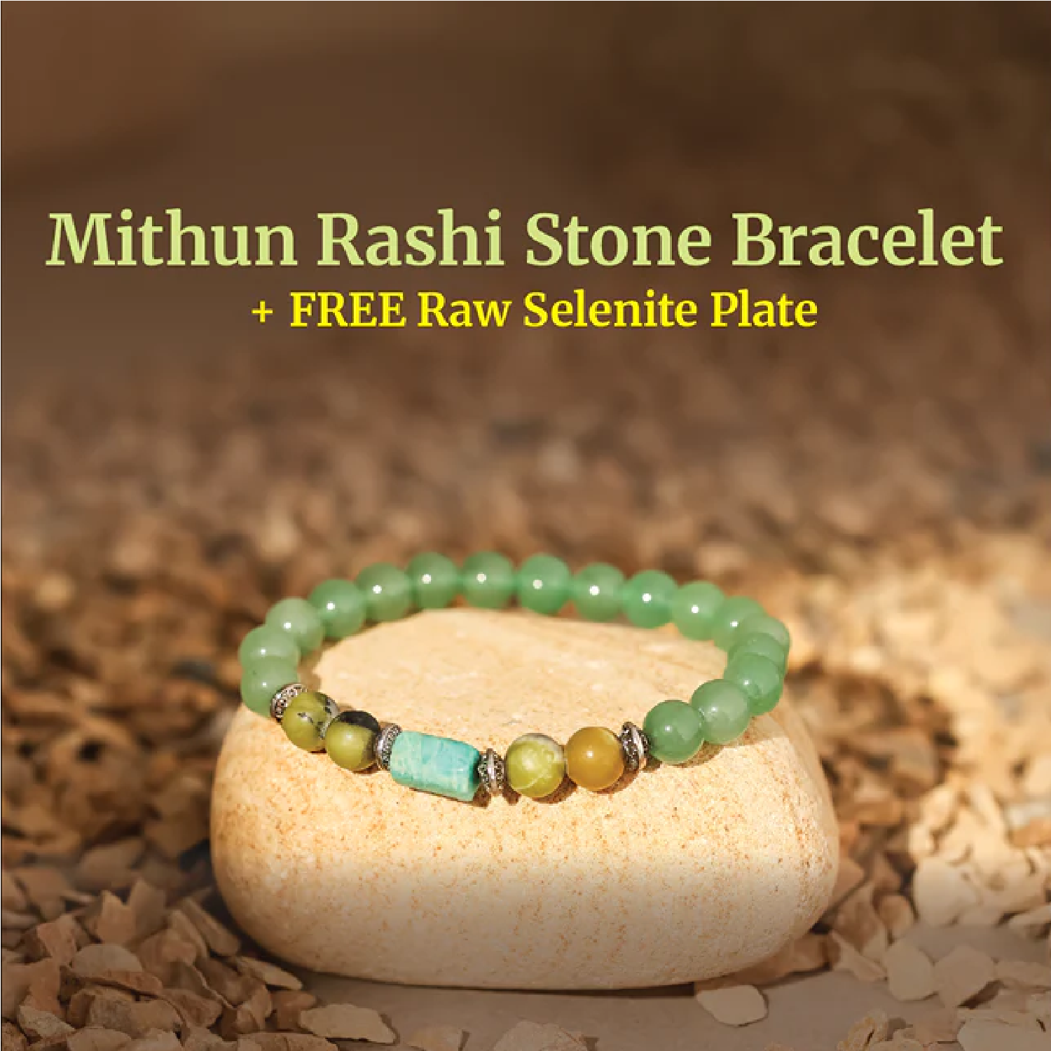 Gemini (Mithun Rashi) Stone Bracelet with FREE Raw Selenite Plate
