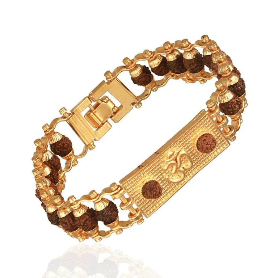 Genuine Paanch Mukhi Modern Om Rudraksha Bracelet with Premium Gold plating.