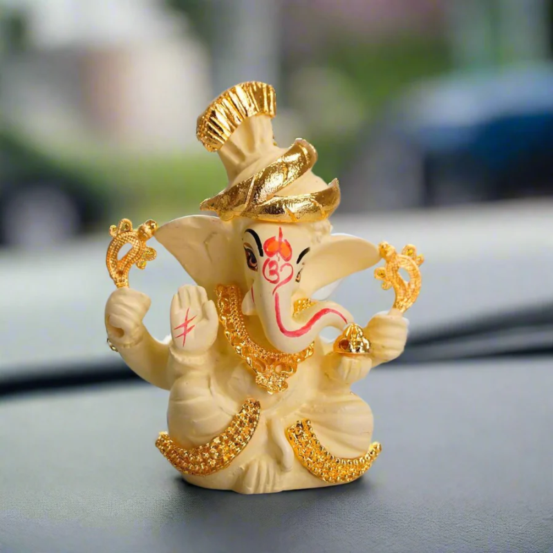 Gold Plated Pagdi Ganesh Ji Idol - for Car Dashboard and Mandir
