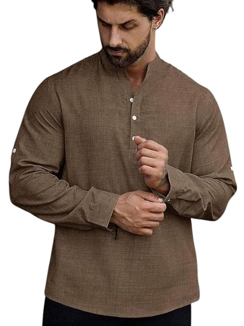 - Modern Mandarin Collar: Sleek collarless Henley design adds a refined, contemporary edge to casual or semi-formal outfits, offering a stylish alternative to a classic button down shirt for men.