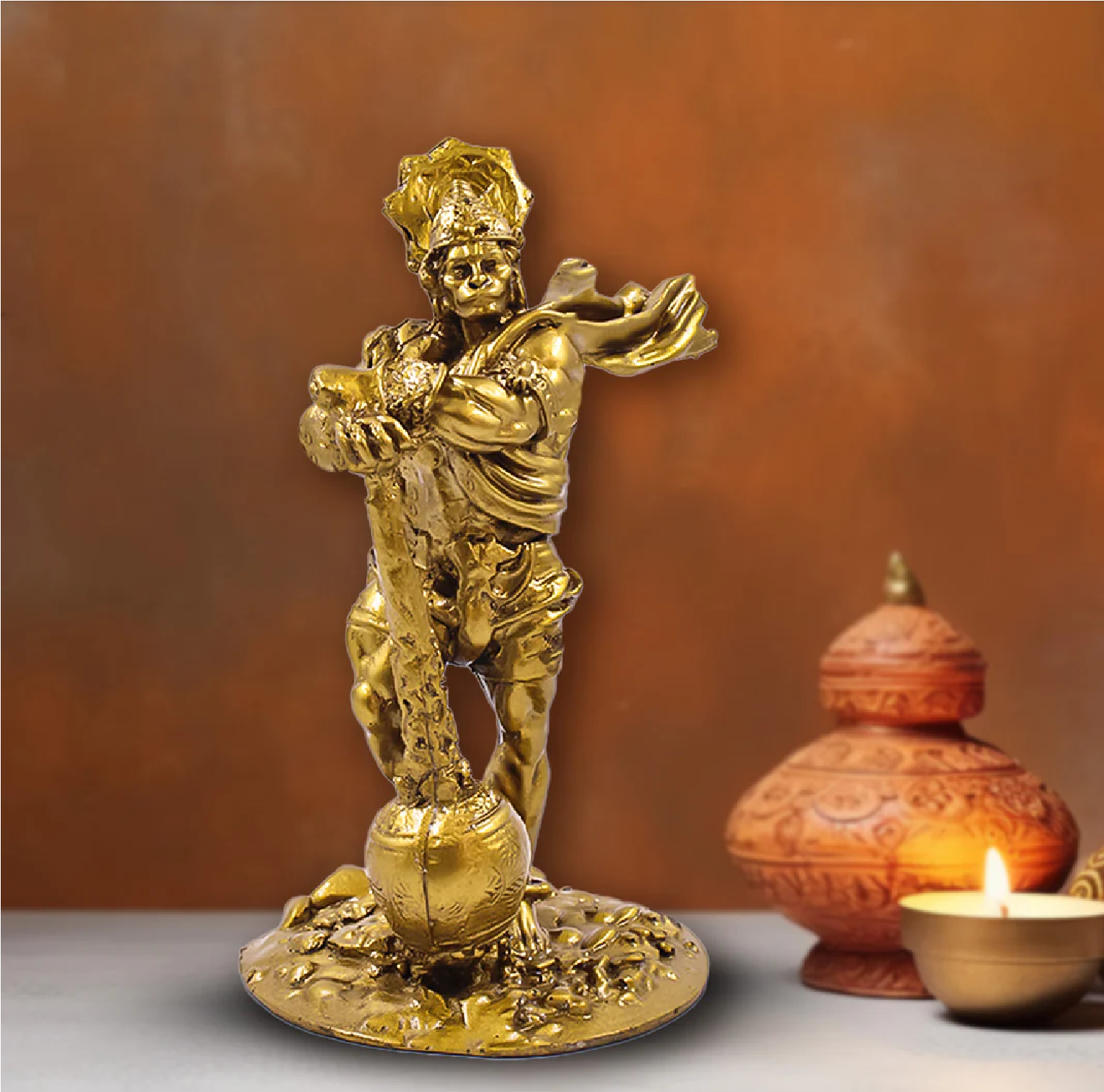 Lord Hanuman divine Idol with Gada - Bronze Finish