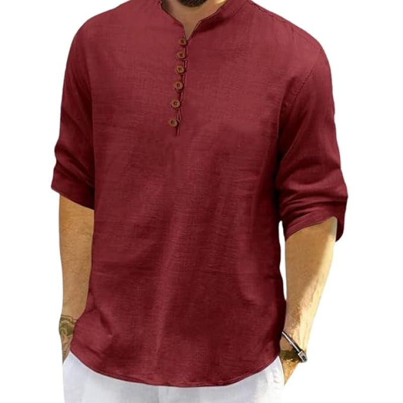 Men's Cotton Polyester Blend Solid Regular Fit Full Sleeve Short Kurta | Ethnic, Lightweight Summer Kurta for Daily & Occasion Use