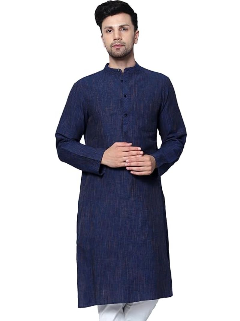 Men's Cotton Regular Textured Long Kurta Full Sleeves - Casual Ethnic Wear