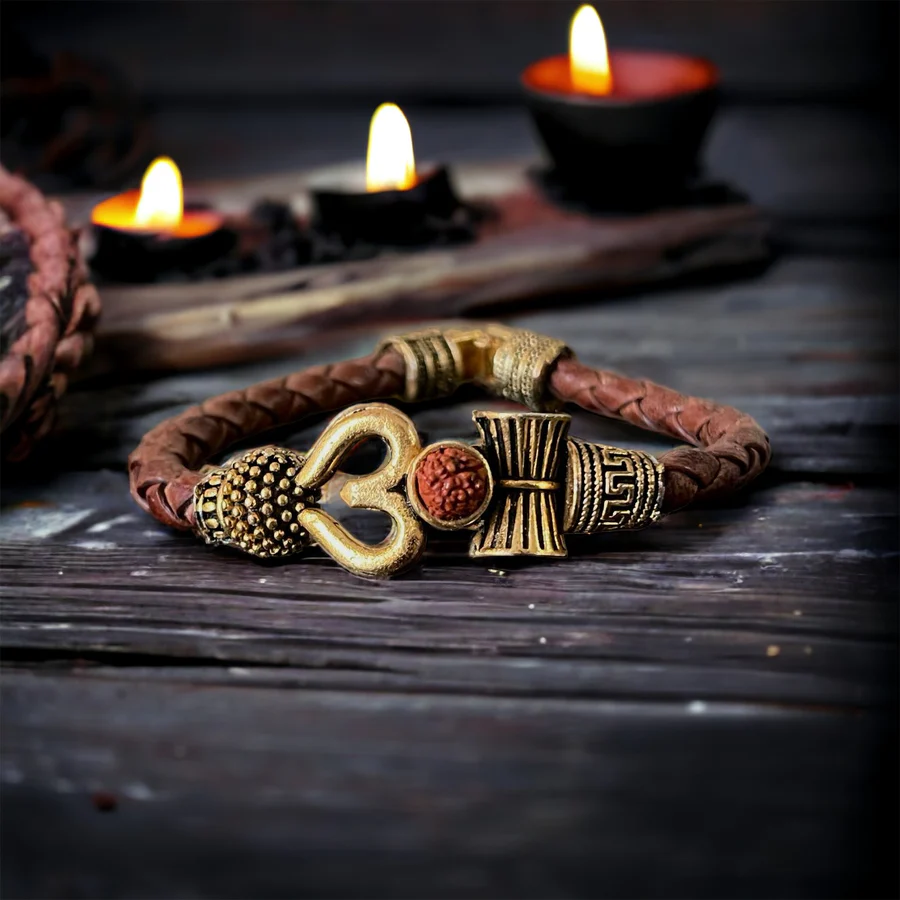 Genuine Paanch Mukhi Om Rudraksha bracelet for Men with Rustic Leather.