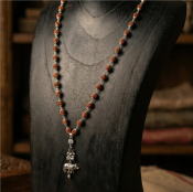 Silver Cap Rudraksha Mala with Shiv Trishul Nandi Pendant