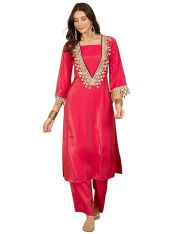 Women's Silk Blend Embroidered & Mirror Work Kurta Palazzo Set | Fusion wear Women | Ethnic Set | Wedding | Party