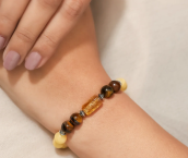 The yellow calcite bracelet is set all around with gemstones of the solar plexus chakra. It is believed that wearing such gemstone bracelets promotes meditation by inducing a state of deep relaxation and spirituality while at the same time adding beauty.