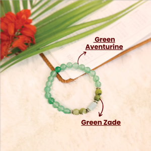 A green aventurine or green stone bracelet is a symbol of good luck. It brings you luck in the areas of health, love, relationships, business, opportunities, and wealth. The green aventurine stone helps to get rid of negative thoughts and the shackles of the past, shaping life positively. Sometimes, it can also be used as a substitute for an emerald. It is very similar to the emerald and is ruled by the planet Mercury.