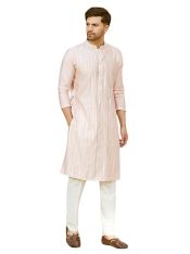 - Men Pink And Gold Chanderi Silk Sequins Kurta With Pyjama