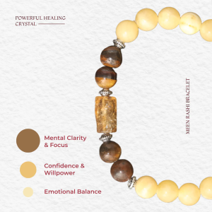 The yellow calcite bracelet is a beautiful and motivating piece of jewellery made from natural yellow calcite, which is known to boost self-confidence, improve concentration, and ward off negativity. It is especially valued as a Pisces zodiac bracelet and is considered a powerful stone for Pisces seeking emotional healing and clarity.